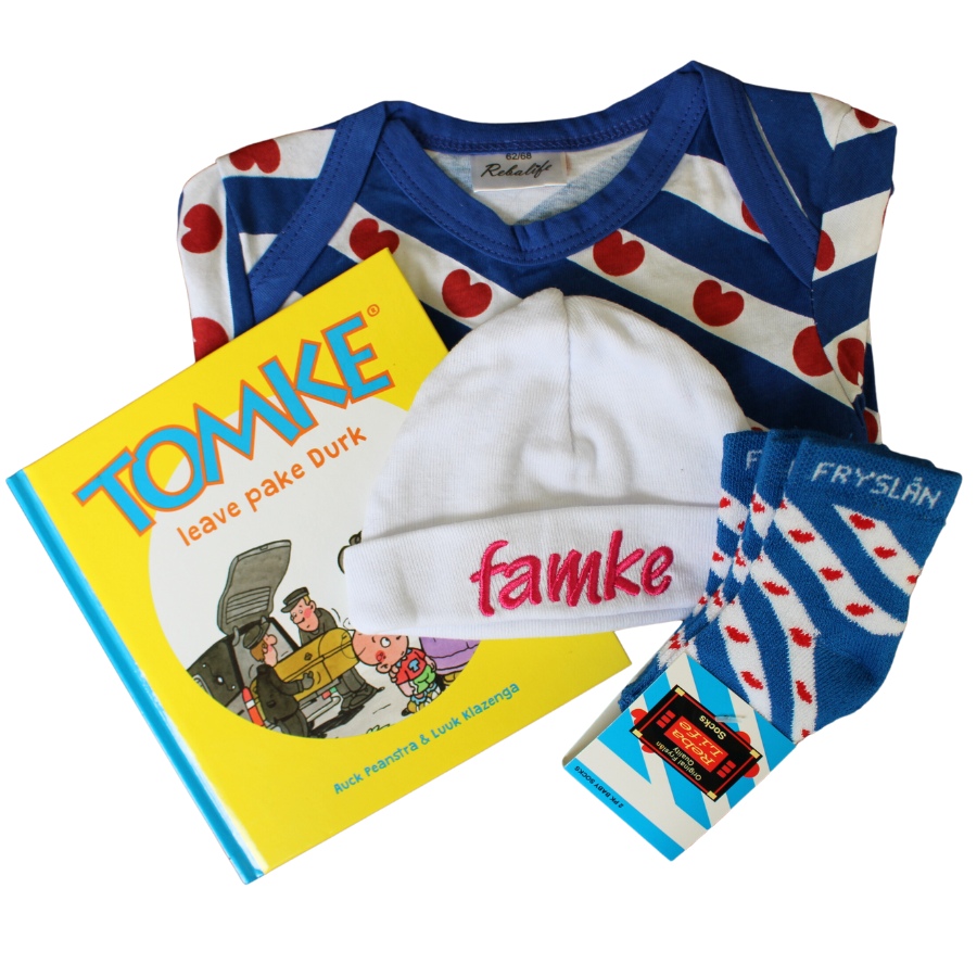 We hebben een origineel Fries Baby Welkomstpakket Famke samengesteld voor een klein Fries baby meisje.