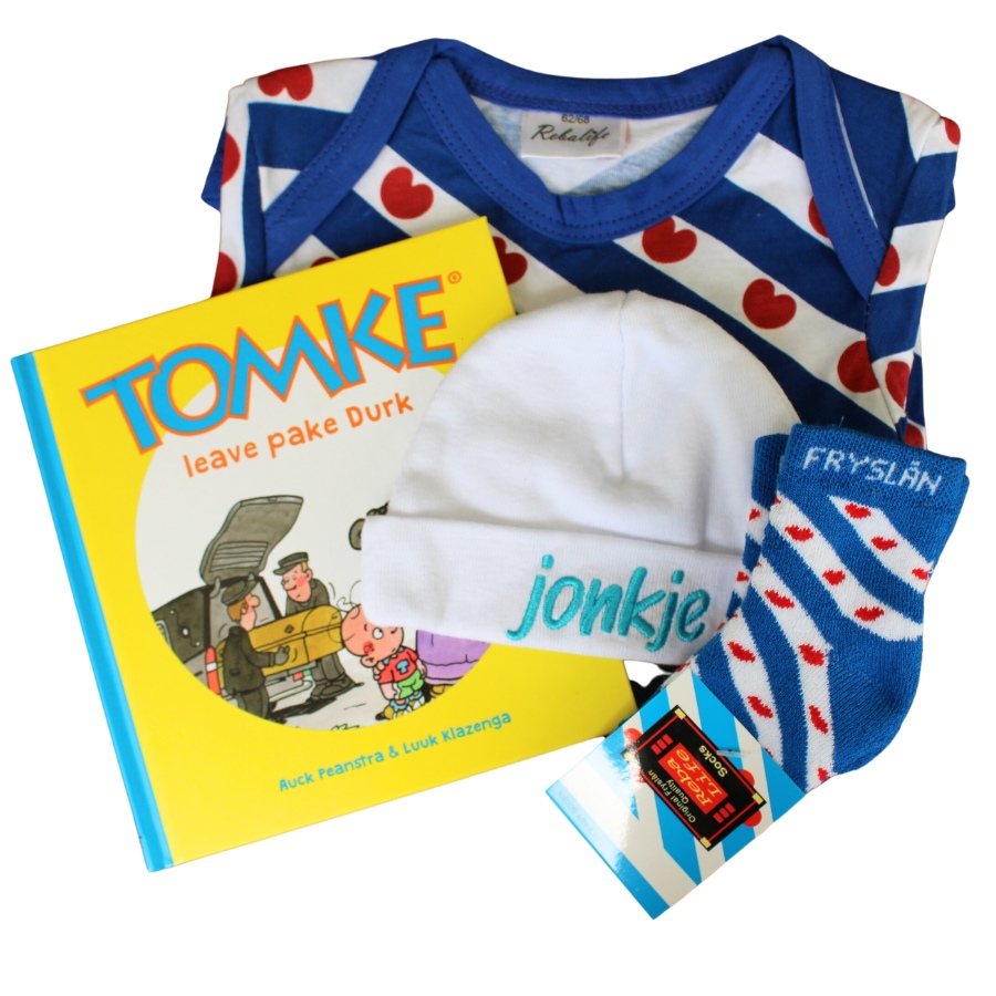 We hebben een origineel Fries Baby Welkomstpakket Jonkje samengesteld voor een klein Fries baby jongetje.