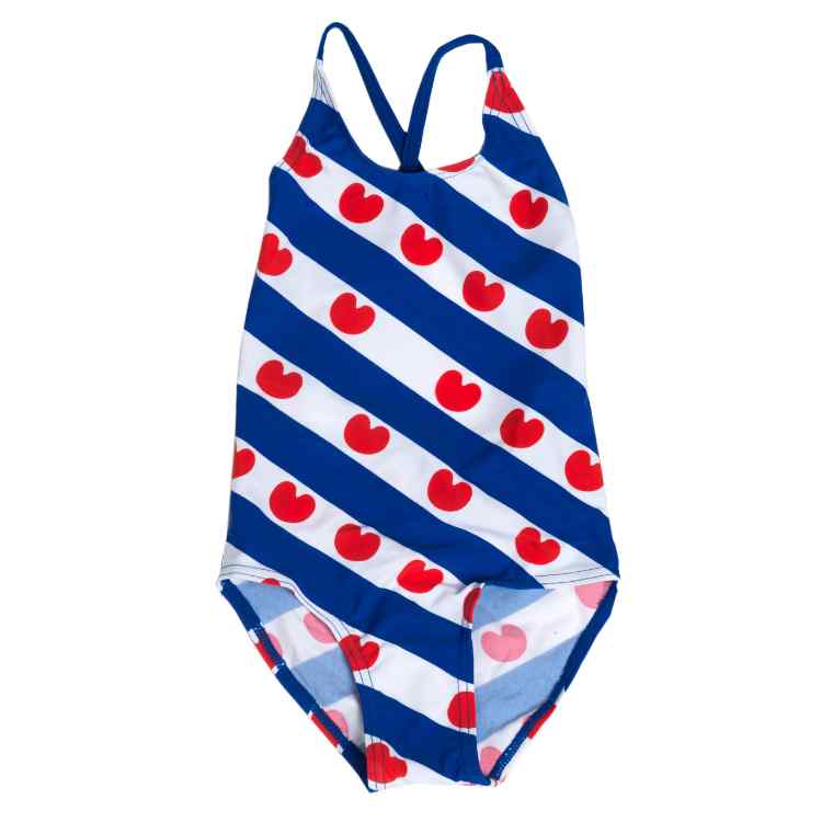 Neem in stijl een duik met die vrolijke meisjesbadpak, dat jouw Friese trots omarmt!