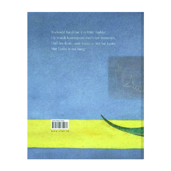 “Krokodil Karel hat it te bûnt makke. Hy wurdt fuortstjoerd troch syn freontsjes. Hiel fier fuort, oant ûnder it bêd fan Lyske. Mar Lyske is net bang!”