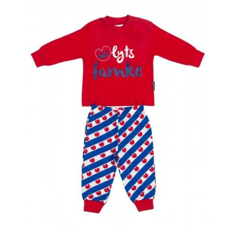 Op deze pyjama in Friesland-stijl staat in de kleuren van de Friese vlag de tekst “Ús lyts famke”, wat in het Nederlands betekent “ons kleine meisje”