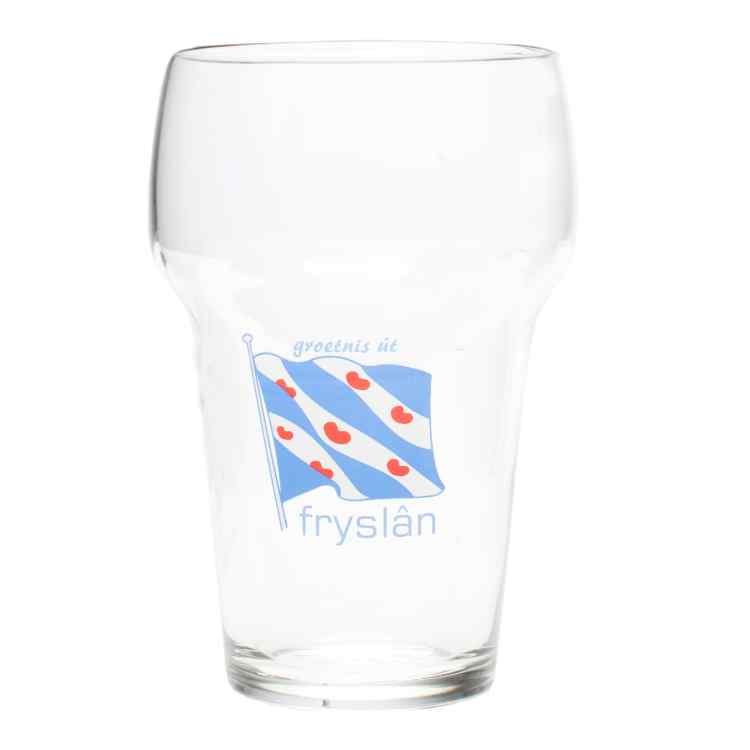 Het Groeten uit Friesland bierglas is een doorzichtig bierglas met de tekst “Groetnis út Fryslân” met de opdruk van de welbekende Friese vlag.